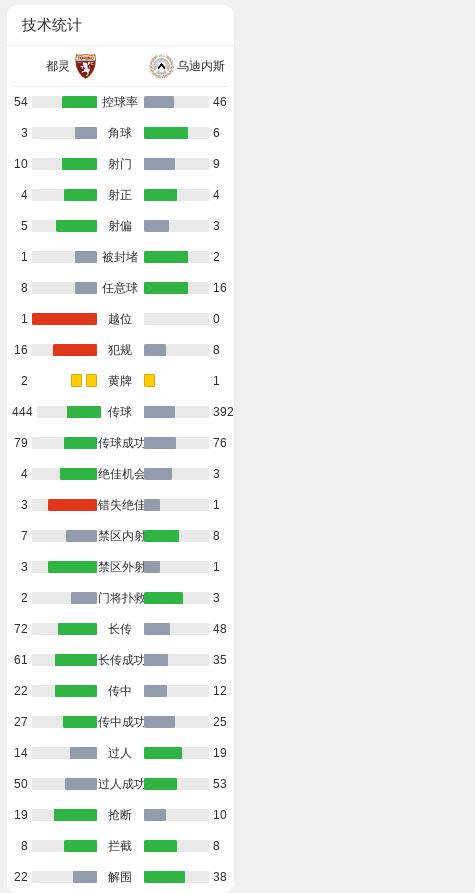 第50分钟,乌迪内斯球员扎诺利助攻扎尼奥洛打入一球。