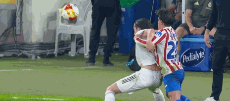 第45分钟,上半场精彩一幕,西蒙尼疑似和维尼修斯互飚垃圾话