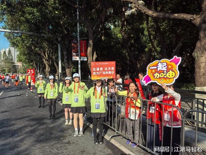 广州市民的热情,表现方式五花八门,多是邻居式的。当进入海珠区后,从25K到27K,赛道旁全是先生加油点,孩子们稚嫩的声响,是广马最入耳的旋律。而当进入荔湾区时,又换了种作风,有有数的私补,市民们端着杯子、盘子,将饮料、食品往你手里塞。