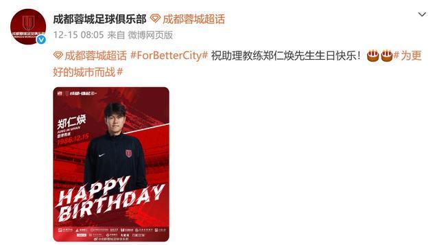 昨天是徐正源的55岁生日,成都蓉城官方并未在社交媒体为主帅送上祝愿,而此前在15日,成都蓉城官方曾为助教郑仁焕送上生日祝愿。